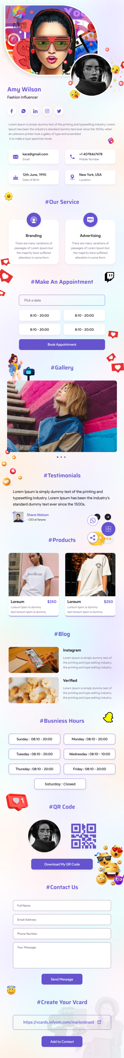 vCard para personas influyentes en las redes sociales